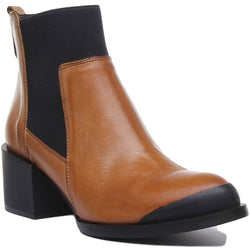 - Heather Block Heel Chelsea Boot In Brown Blue