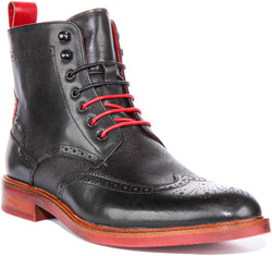 Sold out - Cameron Lace up Brogue Ankle Boots In Black Red