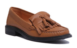 Sold out - Samantha Slip On Leather Loafer With Fringe In Camel