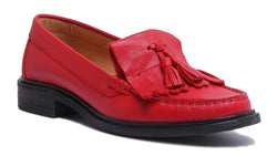 Sold out - Samantha Slip On Leather Loafer With Fringe In Red
