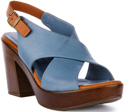Sold out - Nessa Open Toe Sling Back Sandals In Blue Leather