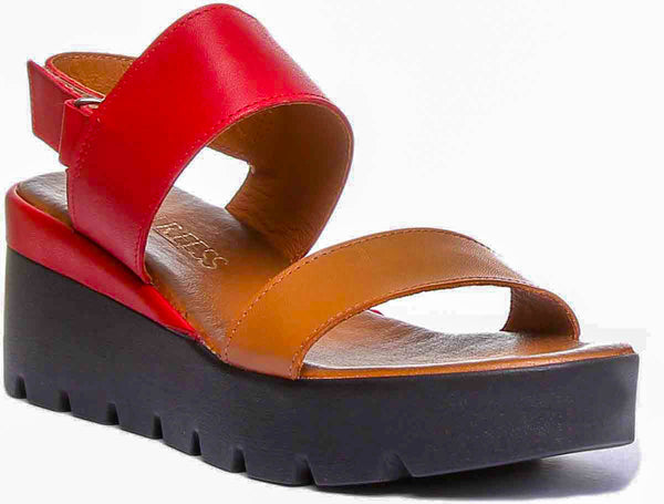 The 7300 W are beautiful leather wedge sandals for women designed by Justin Reess. These slip on sandals have leather matt upper with back strap buckle fastening for adjustable and secure fit. They have mid wedge heels with rubber sole that provides support and comfort to the feet and has grip to most surfaces.These open toe sandals are perfect for summer or spring.