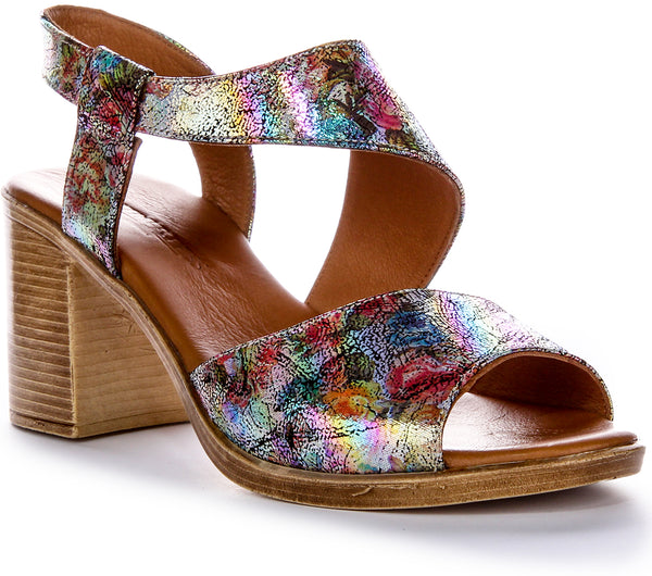 These midheel sandals feature a stunning floral putton design that adds a burst of color and liveliness to your ensemble. Crafted from highquality leather, these sandals offer a comfortable 3inch heel, ensuring both style and ease of wear.