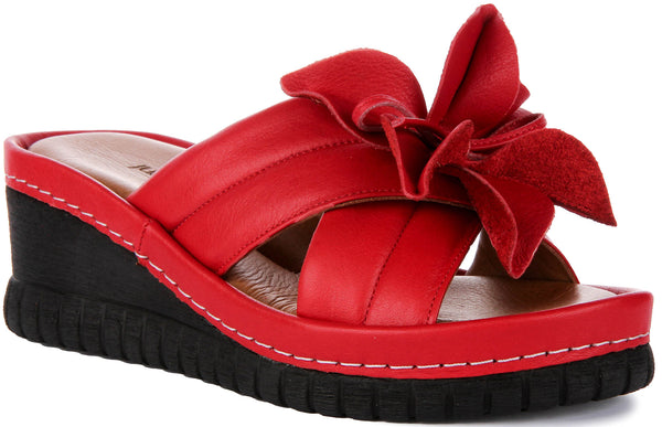 A perfect combination of comfort and style, these wedge sandals from JUSTINREESS feature crossstrap leather upper with flower applique design on the front. It has open front and back for breathability, cushioned footbed for all day comfort and slip-resistant outsole for excellent grip and traction. Finished with clean stitch detailing, these comfort sandals are perfect for everyday use.