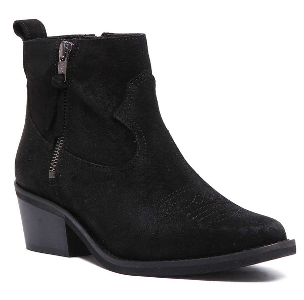 The Cassidy boots from Justin Reess delivers comfort, durability and style. These suede leather boots feature slip on closure with dual zip and heel pull tab for easy on and off. Leather lining and insole ensure all day comfort and unique feminine stitching on foot and upper adds style and elegance to the entire boot. Finished with a feminine low block heel, these boots are ideal for any casual occasion.