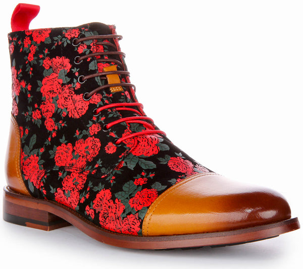 JUSTINREESS George are super comfortable ankle boots made from premium leather upper with oxford toe design. Featuring a beautiful floral print, these boots are lightweight and breathable. It has soft lining and slip-resistant outsole for durability and support. Perfect pair of boots for casual wear.