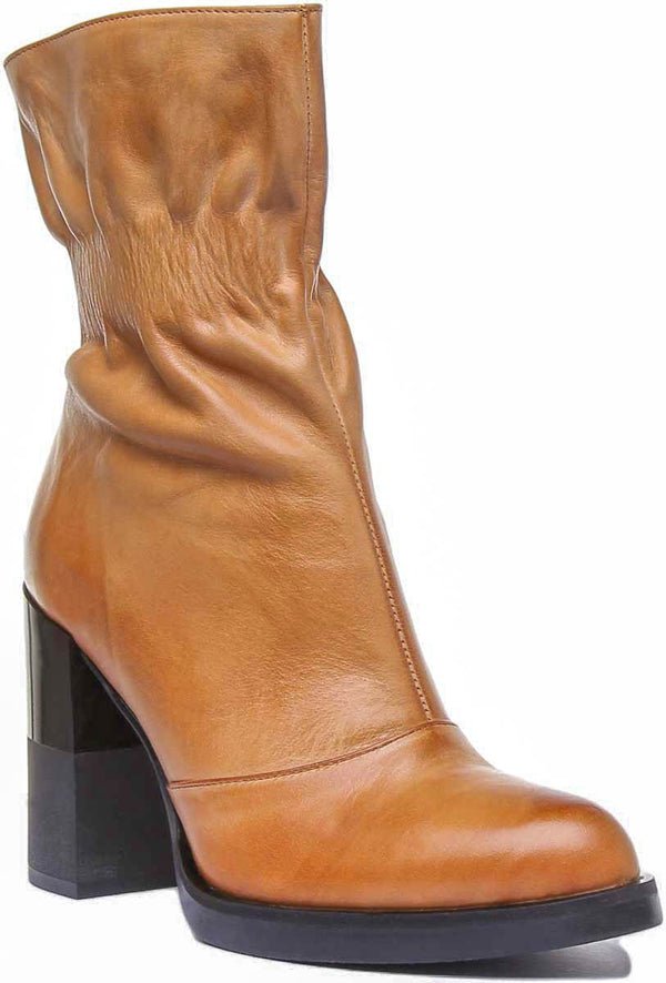 Step out in style with these stunning Harmonee rugged pull on mid calf boots from Justin Reess. These boots feature leather upper with pointed toe and block heel. Pull on closure with side zip offers comfortable and perfect fit. The rubber sole has good traction and grip on most surfaces. Pair them with your jeans or a smart dress, these boots will only add style to your desired look.