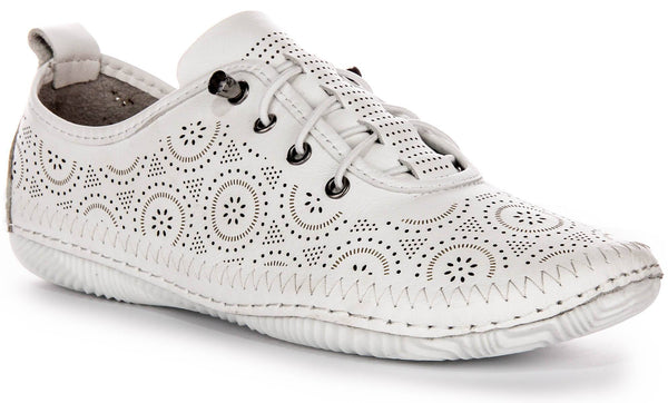 Lacey In White Perforated Geo Met Soft Shoes