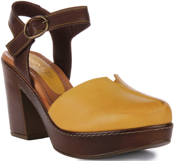 Made from premium leather upper with v-cut and closed toe design, these sandals from JUSTINREESS feature ankle strap closure with buckle fastening for a perfect fit. It comes with mid block heels that add elegance to the whole sandal, while the slip-resistant outsole ensures stability and durability. Finished with JUSTINREESS branding on the insole, these sandals are ideal for any casual wear.