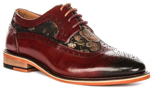 Adding to their distinctive charm, the Ross W shoes feature a unique floral fabric panel on the side. This eye-catching detail injects a touch of femininity and artistry into the classic brogue style. The intricate brogue detailing, with decorative perforations along the edges, further enhances the sophisticated aesthetic of these shoes, showcasing the craftsmanship that Justinreess England is known for.