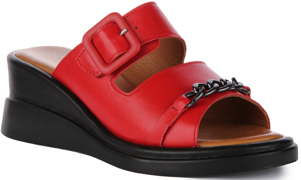 Featuring two strap design on the front with metal chain on one and buckle design on the other, these wedge sandals are made from high quality leather upper. Cushioned footbed provides all day comfort, while the slip-resistant outsole ensures stability in every step. Finished with JUSTINREESS branding, these sandals are for summer.