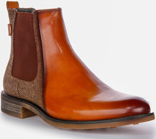 Make a statement in these chelsea boots with tweed effect heels. Made from premium leather upper, these ankle boots are lightweight and breathable. It has soft, breathable lining for added comfort and slip-resistant outsole for excellent grip and traction. Perfect chelsea boots for any casual occasion.