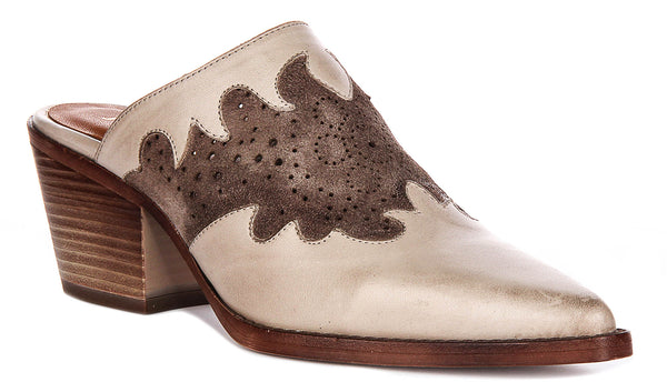 The mid-heel design strikes the perfect balance between style and comfort. The block heel, finished with a stacked wood effect, provides excellent stability and support, making these shoes a comfortable choice for all-day wear. The slip-on mule style allows for effortless wear, while the pointed toe enhances the shoe's elegant and modern silhouette.