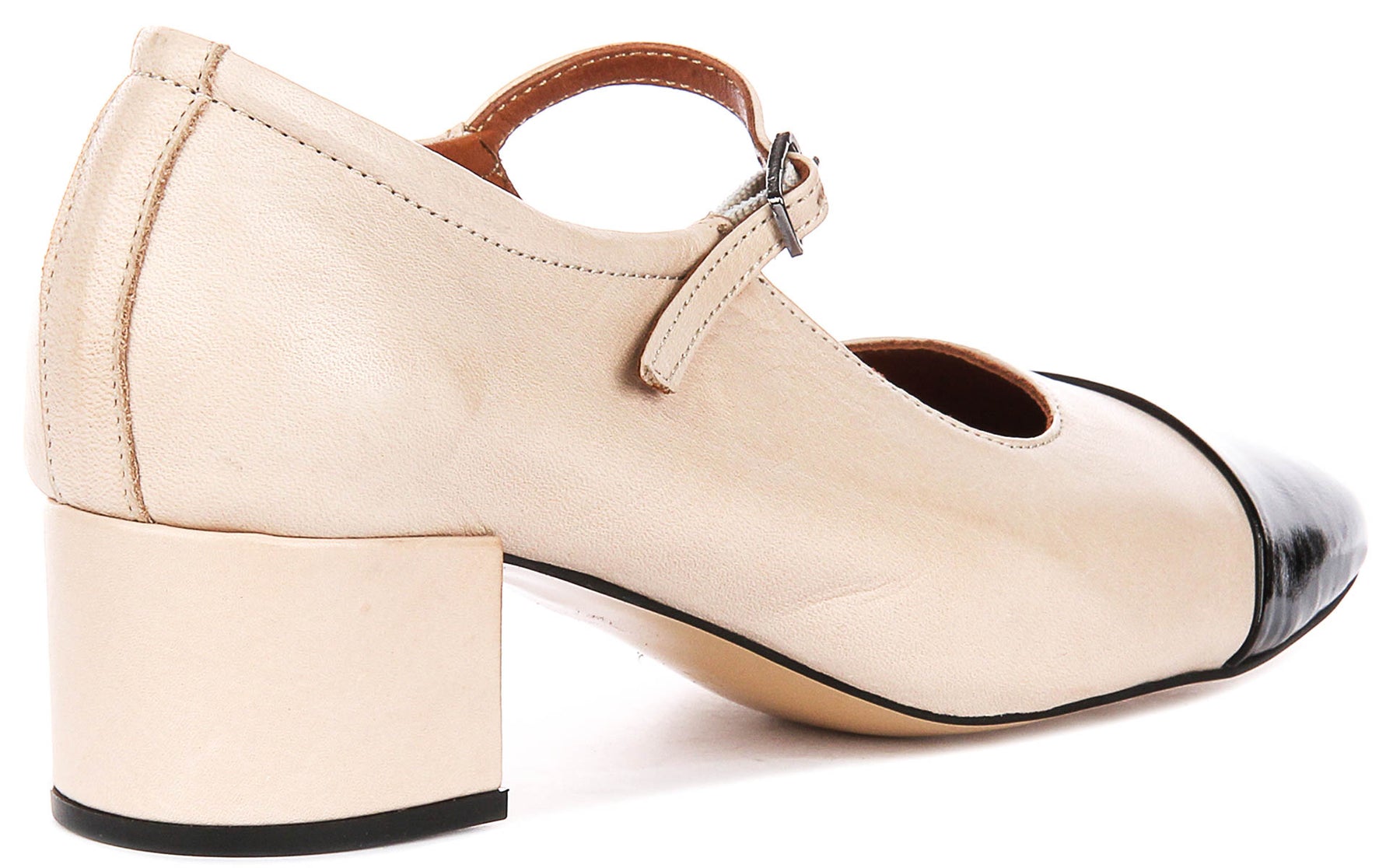 The Kamila 2 features a high-quality leather upper that feels luxuriously soft to the touch while offering exceptional durability. The elegant contrast between the cream-coloured body and the sleek black patent toe cap makes these heels stand out with subtle charm, ensuring they complement a wide variety of outfits, from business attire to formal dresses.