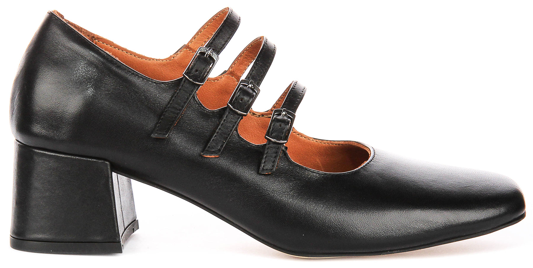 Distinctive features of the Kate 2 include three slim, adjustable buckle straps across the instep. These not only secure the fit but also lend a unique, vintage-inspired charm to the overall look. The squared toe design adds a modern twist, providing ample space for your toes and complementing a variety of outfits, from tailored trousers to dresses.
