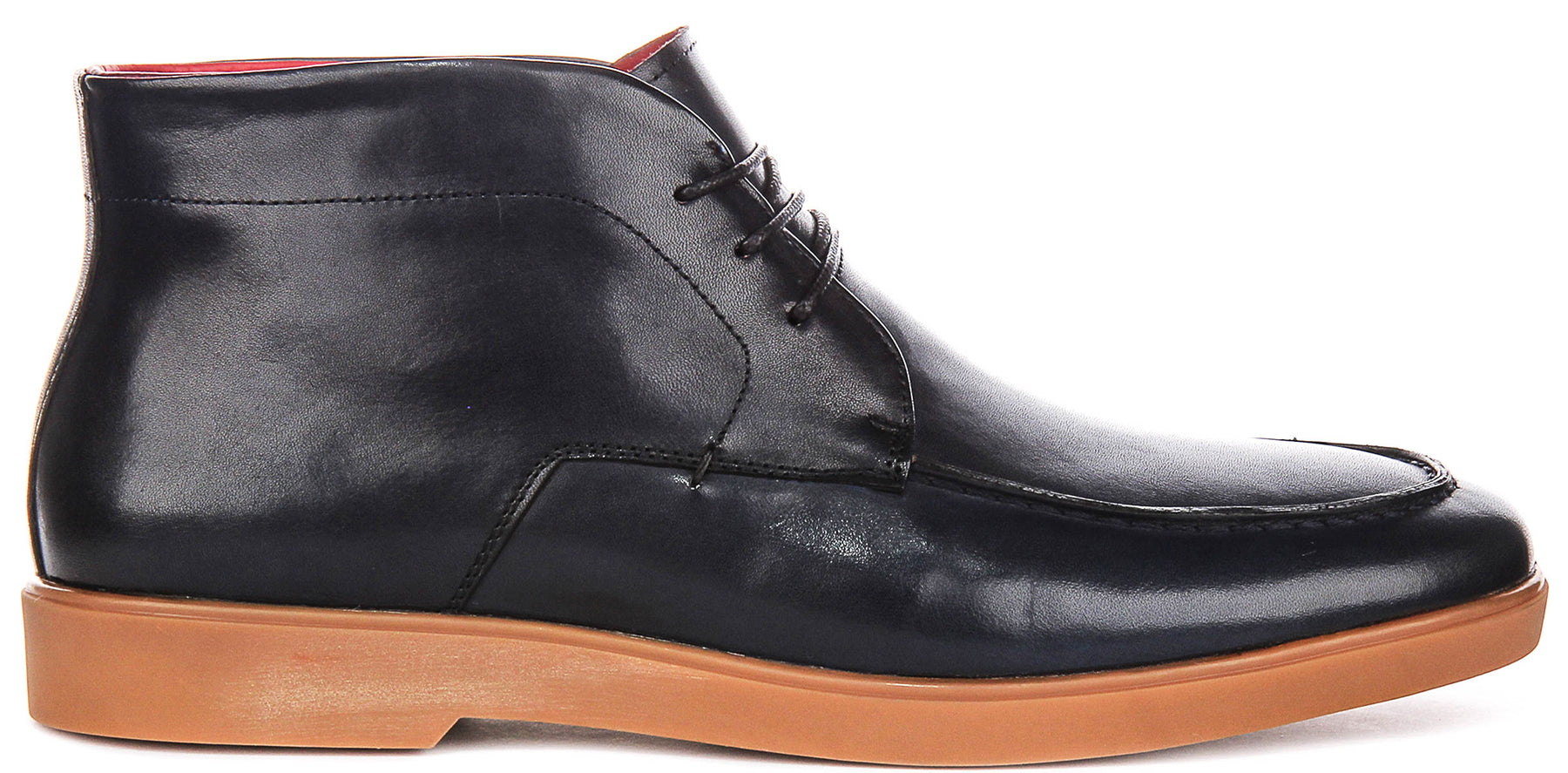 Expertly fashioned from high-quality, smooth leather, the Larry boots are presented in a rich, deep navy colour, offering a sophisticated alternative to traditional black. This luxurious outer material boasts a subtle sheen, ensuring an elegant finish that is both durable and eye-catching.