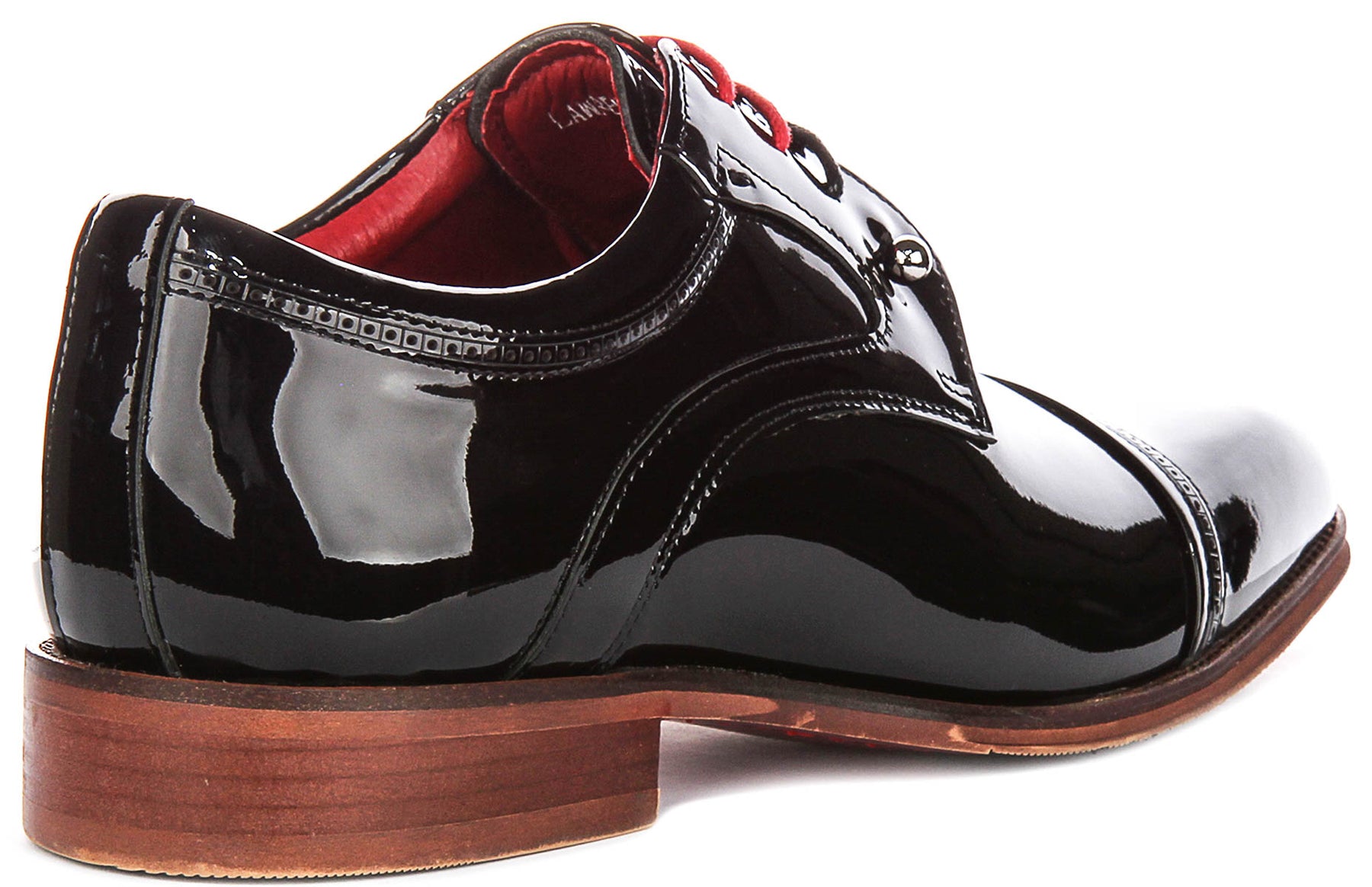 Crafted from a luxurious, high-shine black patent leather, the upper of these Lawrence shoes exudes a polished and sophisticated aura. The glossy finish reflects light beautifully, ensuring you stand out in any setting. A traditional cap-toe design adds to their timeless appeal, featuring precise stitching that enhances the shoe's elegant structure and attention to detail.