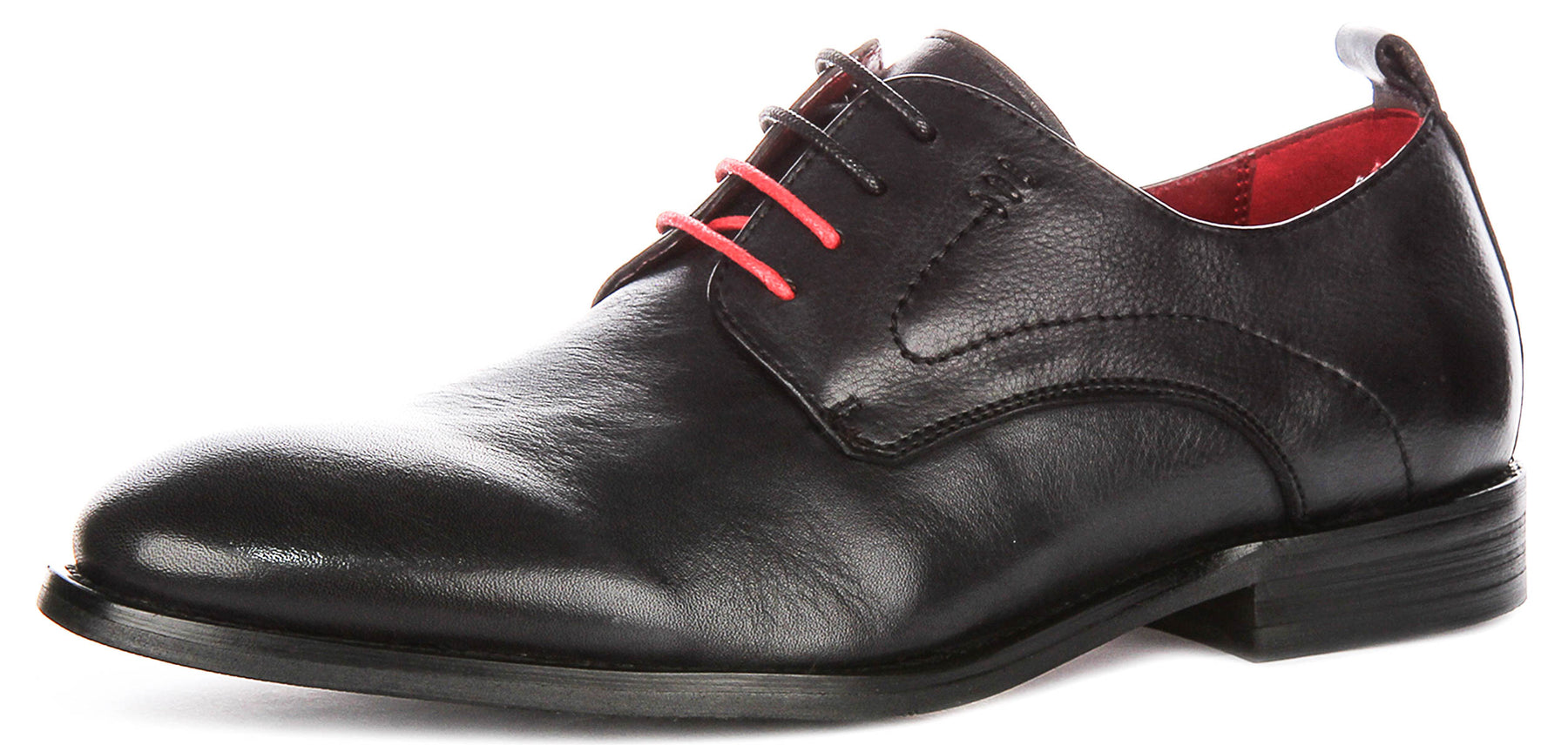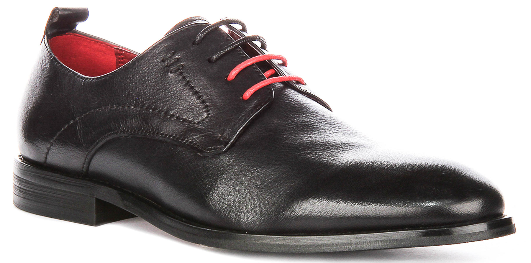 Whether you are attending a business meeting, a formal event, or simply seeking to elevate your everyday smart look, the Justinreess England Tyler shoes are an ideal choice. Their sophisticated black leather, combined with the unexpected splash of red, ensures you make a memorable impression, blending classic appeal with a touch of contemporary individuality.